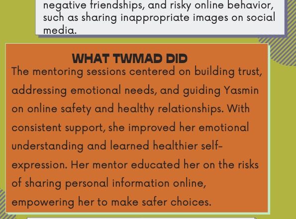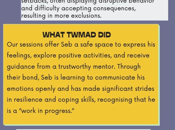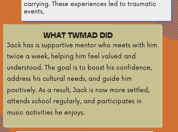TWMAD News will present weekly case studies which briefly describe the journey and impact of our 1:1 mentoring services. Our TWMAD mentors are dedicated to supporting vulnerable children in our community. Every referral we receive [...]